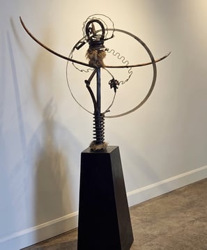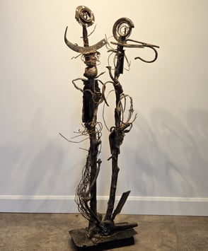 L’art barbare est l’expression qui concorde avec subtilité à ce que mon travail en sculpture peut évoquer. C’est un assemblage de matériaux dont la nature principale est l’usure par le temps. Ferraille et bois de grève, entre autres et qui prennent la forme de quelque chose de primitif, barbare…